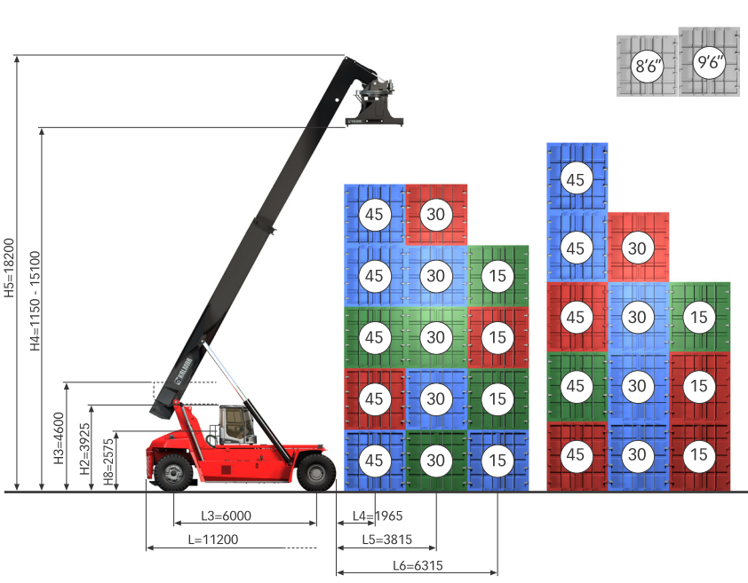 (20’~40′ 実入りコンテナ用リーチスタッカー)