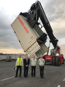 EFIは昨年、Kalmar社製リーチスタッカー3台の注文をいただきました。その第一番目を、神原ロジスティクスさんに、12月22日、無事に引き渡しを終えることが出来ました。コンテナ5段積み対応、最大55度まで傾斜可能なチルテイングスプレッダーを装備しています。その引き渡しの様子を24日の紙面で業界紙に取り上げていただきました。その時、“今回使用していただく機会を得たことは大きな誇りであり、今後多くのお客様にKalmar社製リーチスタッカーを導入していただき、事業拡大に大きく貢献していただければ幸いに思います” という小生のコメントを載せていただきました。