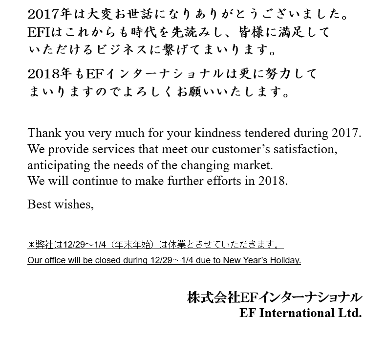 2018 Season’s Greetings 年末年始のご挨拶