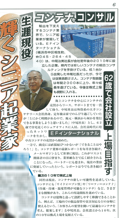 かながわ経済新聞で紹介されました。 投稿日: 2019年5月17日2019年5月20日 投稿者: EF International かながわ経済新聞5月号にて、弊社代表の中尾が紹介されました。 ※かながわ経済新聞合同会社様より掲載の許可を頂いております。