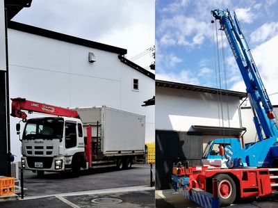 などの問題があり、今回はユニック車ではなく25tクレーン車で作業が行われました。