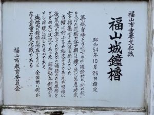 写真は福山市指定重要文化財(鐘楼部のみ)福山城鐘櫓。