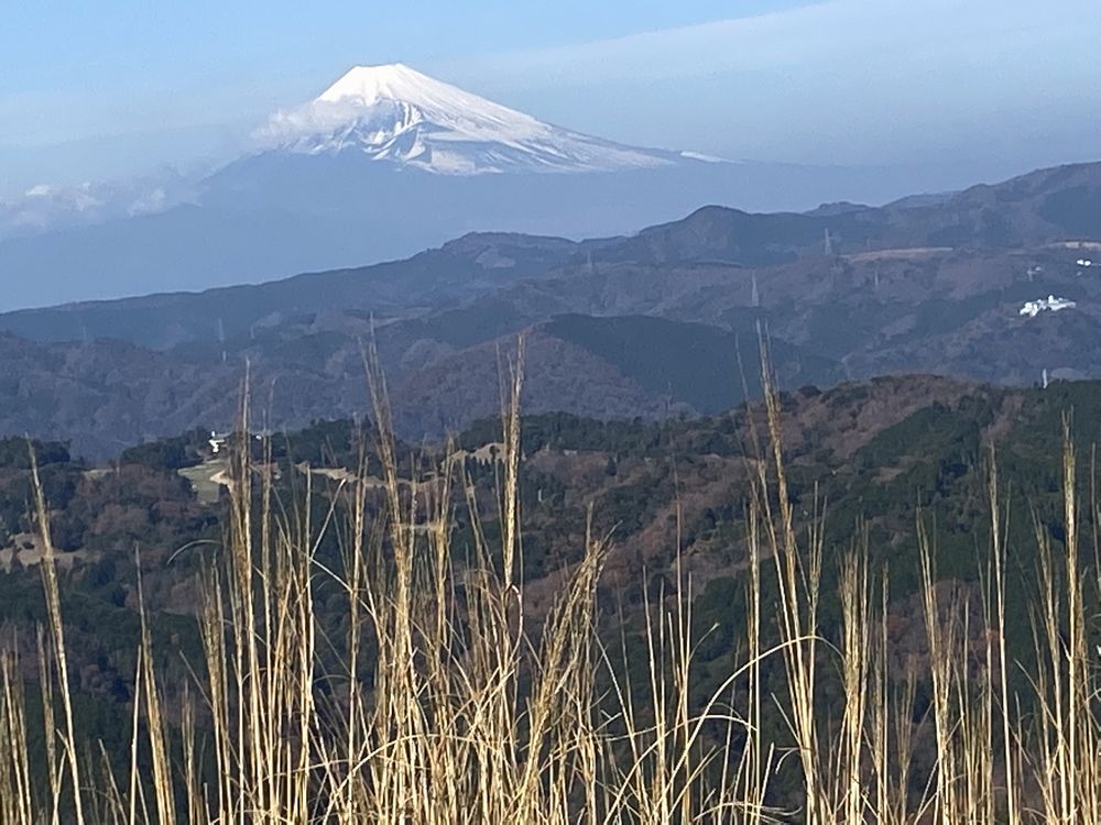 大室山火口跡から富士山が綺麗に見え、ススキの枯れた奥に富士山を撮影したが、こちらも火口跡約1kmを歩き火口跡内にアーチェリー場があり練習をしている人々がいた。