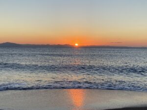 海岸そばのコンビニで温かい飲み物と朝食を調達して日の出を待ちます。そうするとこんな素晴らしい日の出が見られます。