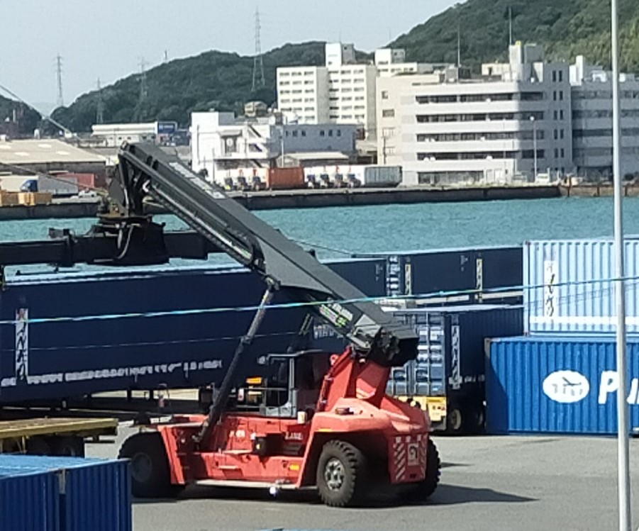 カルマー社製のリーチスタッカーをご利用いただいている下関の関光汽船株式会社様を訪問しました。
